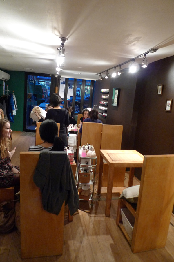 Really, the only limit is your imagination. Online I saw a Mondrian manicure which is quite enviable; black lace, which was requested by a young French woman while we were there, would also be cool. Sadly that girl was super pissed because it wasn’t possible – which leads me to my biggest warning/recommendation: Make an appointment!! and specifically ask for Calgel Nail Art if you want anything special, otherwise you’ll be pencilled in for a regular (though, surely wonderful) manicure and look on sadly/angrily as those with more diligent phone skills get all sorts of specialness on their nails. The calgel manicure takes about an hour and a half.