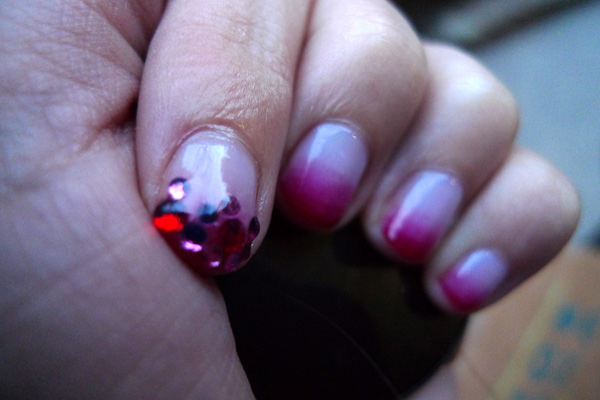 Sakura Nail Salon is one of the few spots in the city where you can get Calgel nail art, a nail-healthy, shiny polish that protects nails as it makes them look totally awesome. While the artists (Fumiko and Hitomi are the best!) can create nearly anything your heart desires (I toyed with the idea of cats on thumbs) one of the most popular treatments is the ombre manicure. I opted blood red fading into clear, which allows my nails to grow without an obvious line where the manicure stops and gives me the look of a vampire that’s just had a messy meal. I added some bling in way of crystals on my pointer fingers. Astrid went bolder in color and got blue fading to black with gold lightning bolts on her thumbs. (see photos below/after the jump.)