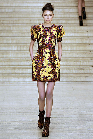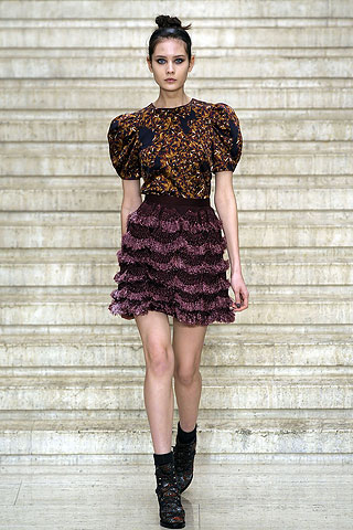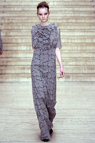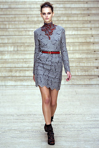 Though Erdem has been around for a few years and the collections have been consistently nice (as I look back into the archives), it’s only recently that the line made a huge bleep on my radar. I’ve looked and re-looked at his Fall 10 collection over and over finding more to love each time: with florals, body flattering shapes, and lace the clothes are pretty and feminine without being gloopy and rote; I love the voluminous puff sleeves and bell skirts as well as that dreamy grey lace.