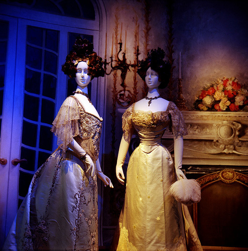 We were a little surprised to find the first “Heiress” room filled exclusively with Worths (not that we’d say no to a Worth or, pun intended under estimate his Worth as one of the most amazing couturiers if his time) but there were other designers of the era. The room for the suffragettes pretty much screamed “boring!” – all the wool suits were pushed in the corners with little fanfare, but my biggest gripe was the abrupt and undignified end. After the dreamy Starlet clothes of the and 40s, we’re accosted by a bright screen of alternating images of modern beauties (like Jennifer Aniston, of course) and a blaring loop of the title sharing Lenny Kravitz song. After all this dimly lit beauty what were they trying to say? That true style ended in the over 60 years ago and now it’s all pop and noise? Probably not the intention.