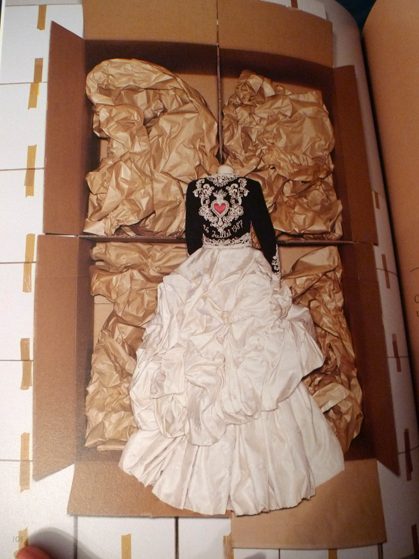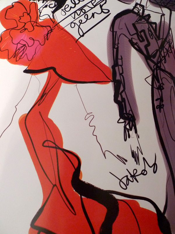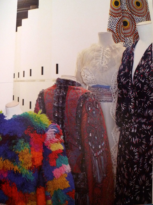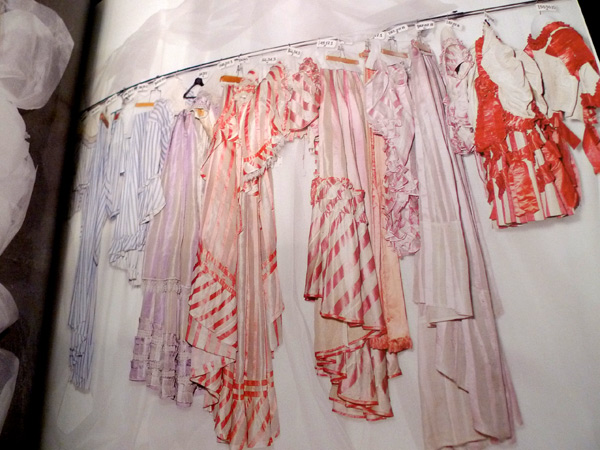 Divided into themes like “colour” ( “The red that I love to use everywhere… comes from my mother.. She always dressed me in red, or at least a touch of red, which had a cheering effect”), “Checks, plaids and tartans” (“Eccentric yet conservative, checks and their Scottish cousin, tartan, re the essential embodiment of British dandy chic.”), “ceremony”, “graphics”, “patchwork”, “cobwebs”, “black”… the book features short, colorful descriptions and beautiful photographs of beautiful clothing.