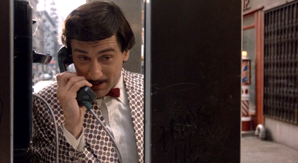 His character, Rupert Pupkin is no Travis Bickle, but he’s no less messed up. He dreams of comedy stardom, specifically stardom reached on the arm of Jerry Langford, a late night talk show host played with incredible jaded subtely by the usually goofy Jerry Lewis. He finds a friend, a rival, and eventually a partner in crime in a wealthy loon Masha played by the amazing Sandra Bernhard. After this off kilter, insane and lusty performance, I forever love her and wonder why her particular brand of on screen craziness isn”t used more often in movies.