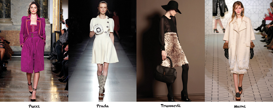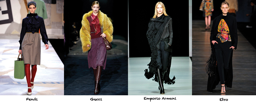 Meh. Milan just didn’t offer as much this season to get me excited, I thought a lot was strangely dated and unflattering -but on the positive side, Fendi was fab. I had a hard time deciding between looks to feature (I included the fur vest evening look below the jump) but decided on this great stylish secretary look that plays with colored tights and an update to the pussy bow shirt of the 70’s.