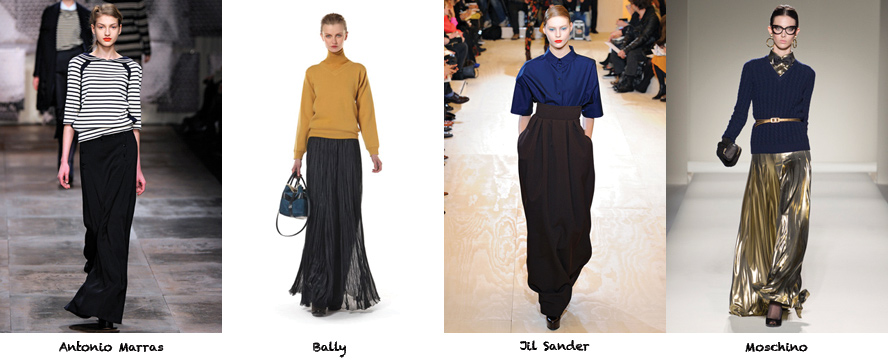 Jil Sander met the trend with a strange but appealing origami shape and a high waist. And though that boxy collard shirt is very now, it would probably be more wearable paired with something simpler.