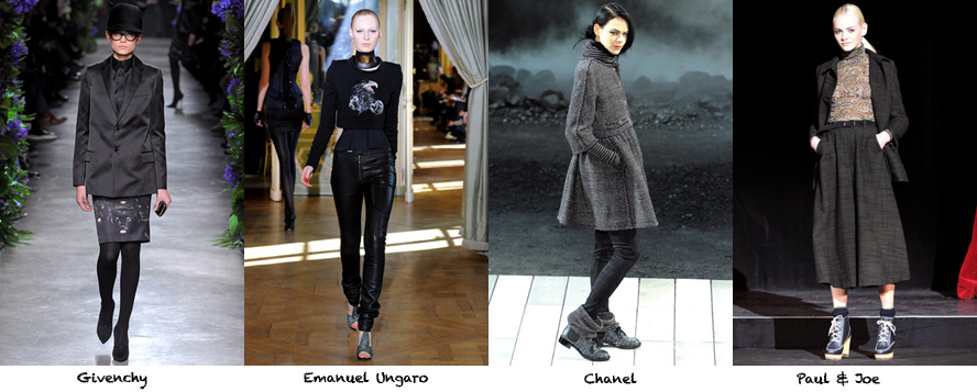 A Gothic blackness hung over the Paris shows and who better to represent the trend than the Belgian mistress of the dark, Ann Demeulemeester, who turned out signature awesomeness like this layered corset closure skirt. (She also went into some dubious territory with the Yeti trend but we’ll discuss that later).