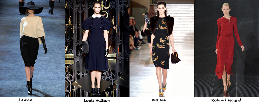 The 40’s were mined, then turned on their head at Louis Vuitton. The result was tons of fun. I especially love this slightly naughty little girl look with it’s peter pan collar and puff sleeves. The gloves and lace up pumps complete the look.