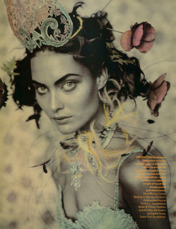 The dreamy waif spent the good old 90’s mostly sharing the spotlight with dear friend and fellow supermodel Amber Valletta. She’s tried acting, which is sweet and seriously, she just flat out owns a few looks in my mind – thinking the pink feather dress, those black wings and that bob haircut in the first photo below.