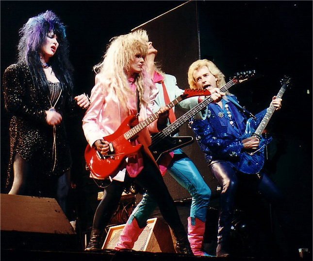 Style wise, they always stayed true to the deacde’s trends, yet remained always themselves: tough and scrappy while remaining feminine and just slightly vunerable. Satin jumpsuits, leather fitted jackets, blue eyeshadow, feather chokers, big hair and corsets – these girls could rock anything they wanted to.
