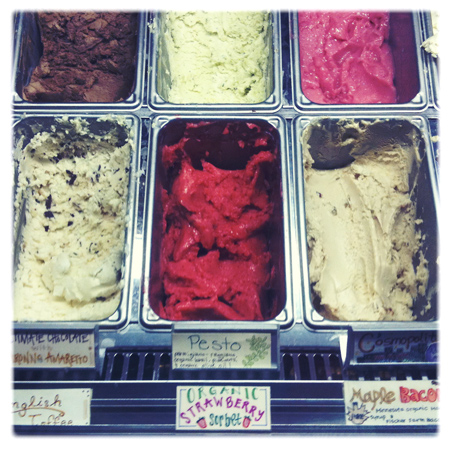 I went for it and sampled their wildest flavor – pesto – and found it remarkably refreshing and nice in that the herbal taste balanced out the sweet. So yummy I got a big scoop of it.