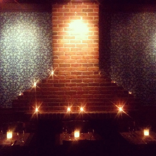 There is a definite template for new, hip restaurants keen on slabs of meat in Brooklyn and Amber Steak House ignores it completely. Here old school “elegance” with white table clothes and bow tie waiters meets the over the top “fancy” design of the late 1990’s.