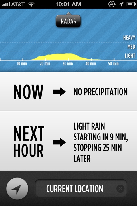 It does one thing and one thing only: accurately let you know if it will be raining where you are in the next hour.