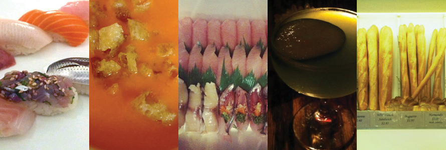 Writing this entry is making me very hungry – for spicy Hunan, fresh sushi (on both coasts), creamy gazpacho, huge steaks, and a French childhood favorite.