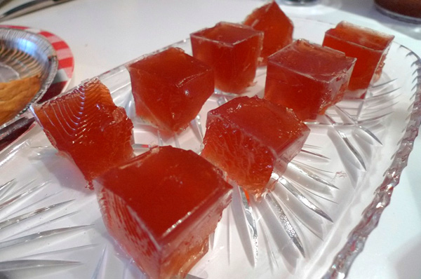 The recipe comes from Jelly Shot Test Kitchen, an entire site dedicated to boozing up the jiggly dessert by Michelle Palm – who has a book coming out soon. (Note that Jessica substituted strawberry juice for the cranberry.)