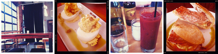 We were thoroughly expecting to hate the place, honestly. I thought we’d share a joke about “Trix” and call it a night, but as strange as the place is, it’s also incredibly inviting, mellow, got an interesting cocktail (I had something with bison vodka and blackberries) and beer menu, and serves some of the finest, biggest oysters I’ve had in a while. Even our friends, Mike and Shaun, far harsher critics than we are enjoyed their visit.