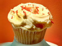 Readers of my blog are probably familiar with my friend Mike and his culinary ingenuity (he’s made home made White Castles, churros donuts, a Momofuku menu, and Oktoberfest pretzels in the past) but at work, he’s somehow never won a prestigious bake off… until now! This creative Root Beer Float cupcake comes from a modified Food Network recipe below. I was lucky enough to try one before they went to the office and fond it much like a nice gingerbread cake with home made frosting, yum!