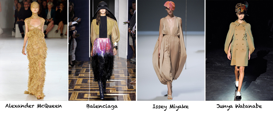 Vivienne Westwood presented amazing off kilter looks that magically played with human proportions. This mystery rich woman vacationing in the desert look is a personal favorite.
