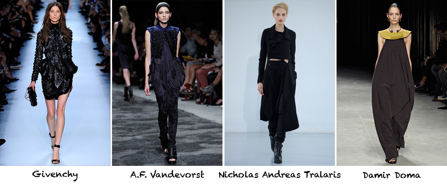 A.F. Vandevorst’s drapey gothic mix of feminine and military could have walked off into the sunset with the Demeulemeester collection and lived happily ever after. Must figure out how to mimic this great small jacket, flowing top, skinny jeans look.